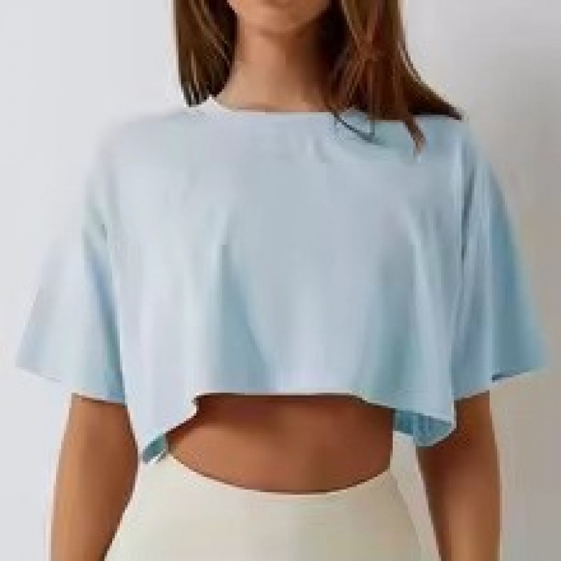Ropa de algodón de manga corta para mujer, ropa para correr y bailar, Top corto para Yoga y Fitness, Camiseta deportiva holgada para el ombligo, camisetas de entrenamiento para gimnasio